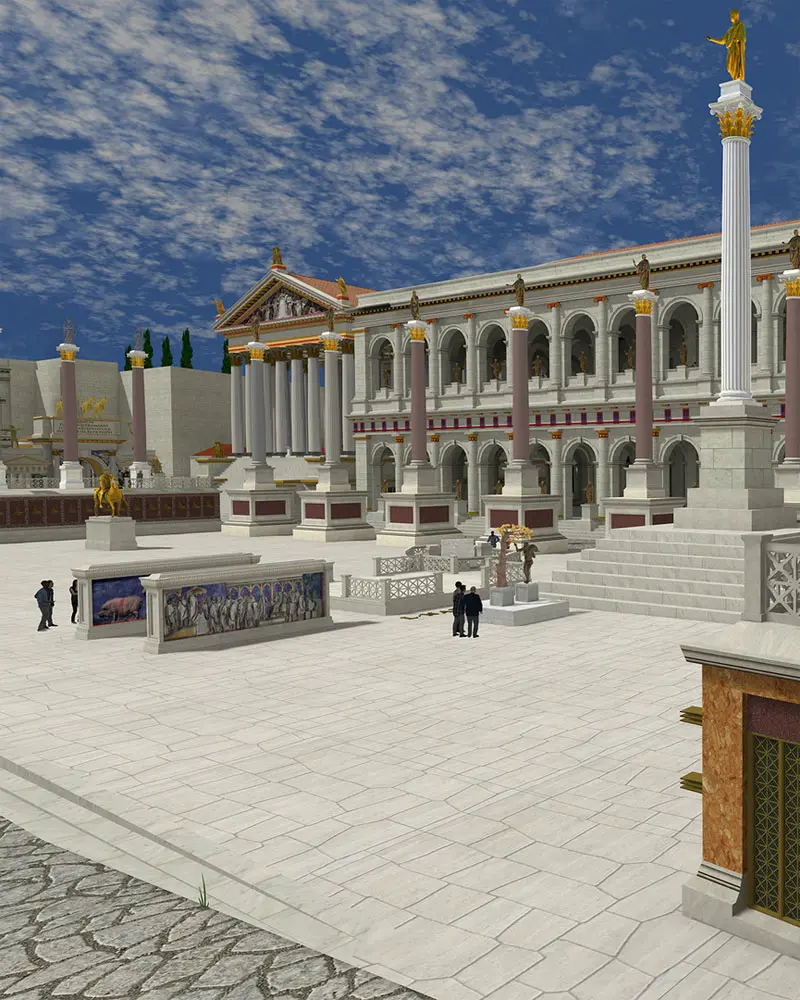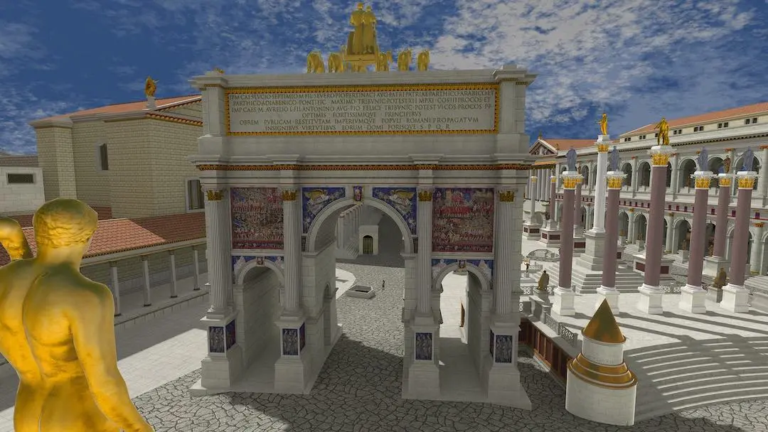 The Roman Forum ricostruisce nel dettaglio lo spazio del Foro romano, corredandolo dove opportuno di pannelli informativi che ne illustrano storia e caratteristiche; l’utente ha la possibilità di ascoltare la voce di un esperto che descrive monumenti, affreschi, nonché usanze o pubblici uffici.Il tour può protrarsi fino a una durata complessiva di tre ore. Affascinante la funzione “Time Warp”, che fa sì che l’utente possa in qualsiasi momento scegliere di visualizzare il foro romano nella ricostruzione virtuale oppure nella sua forma attuale, teletrasportandosi magicamente dal mondo digitale a quello fotografico, composto dalle rovine attualmente osservabili nella capitale.