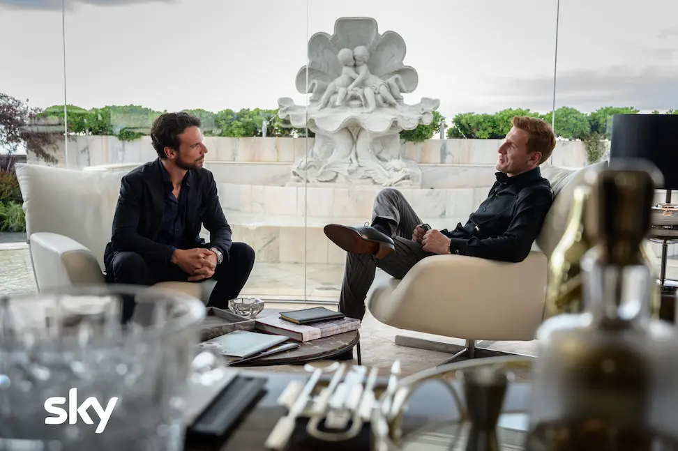Uomini e donne d’affari si muovono in questi scenari, non solo negli esterni ma anche nei patinati ambienti interni, ville dal sapore hollywoodiano, rooftop, terrazze con vista mozzafiato e attici. Un mondo che si ripete anche al di fuori del capoluogo lombardo, nelle scene che danno alla serie un respiro internazionale girate a Montecarlo, Madrid, Parigi e in costa Smeralda. I materiali scelti per gli interni – vetri, marmi, superfici riflettenti, metalli o legni pregiati – danno anch’essi l’idea dell’attenzione all’eleganza, che in certi casi diventa opulenza, degli ambienti in cui interagiscono i personaggi. Gli stessi uffici della ISG mantengono uno stile sobrio ed elegante fatto di legni, marmi e vetri.