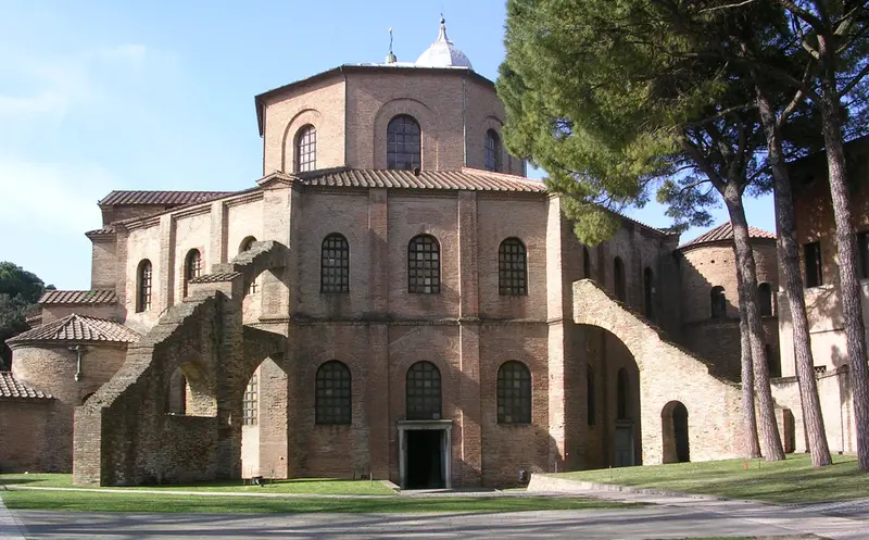 Al V e VI secolo, però, appartengono i più importanti capolavori di Ravenna. Si va così dal cosiddetto mausoleo di Galla Placidia, sorella di Onorio, in origine annesso alla chiesa di Santa Croce, in gran parte distrutta, al battistero degli Ortodossi; per poi passare ai monumenti ariani voluti da Teodorico, quali il battistero degli Ariani, appunto, il mausoleo di Teodorico, alla basilica di sant’Apollinare Nuovo. Proprio quest’ultima segna il passaggio all’epoca bizantina di Giustiniano, che fece modificare i mosaici della chiesa, cancellando la memoria di Teodorico, oltre a far costruire la basilica di San Vitale e quella di sant’Apollinare in Classe, la prima della storia cristiana con la raffigurazione nell’abside di un santo – il patrono di Ravenna – e non di Cristo o la Vergine.