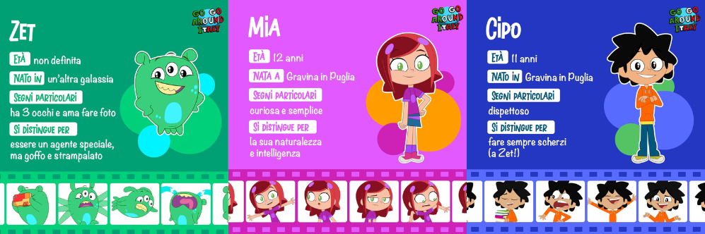 Dal 20 ottobre su Raiplay e dal 6 novembre su Rai Yoyo inizia il viaggio in italia con l’alieno agente speciale Zet, Cipo e Mia. Go Go Around Italy diretta da Francesco Colombo è un progetto della società di produzione pugliese Intergea e di Armosia in collaborazione con Rai Kids e con il sostegno di Apulia Film Commission, Regione Puglia e Ministro della Cultura.